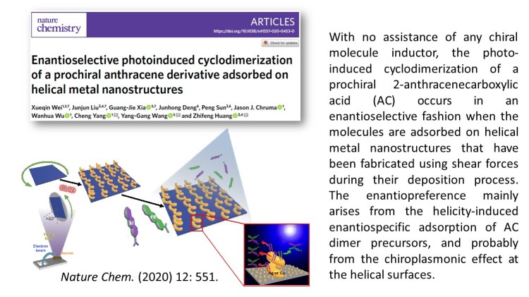 - Chiral nano-inorganics for disclosure of the origins of biochemical homochirality, enantiodifferentiation, asymmetric photo/electrochemical catalysts, spin chemistry, bio-sensing, bio-imaging, enantioseperation, and chiroplasmonics;