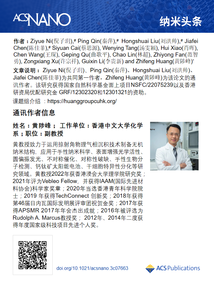 ACS Nano Nano Headlines | Huang Zhifeng Team at the Chinese University of Hong Kong