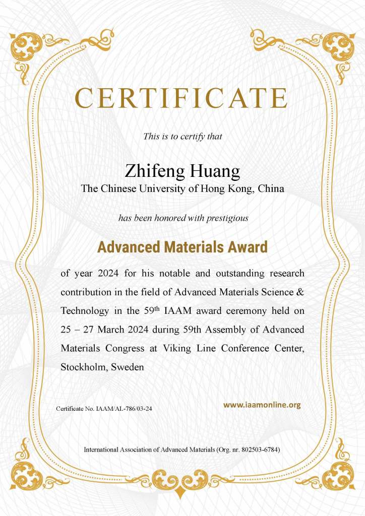 Congratulations to Professor Huang for winning the Advanced Materials Award 2024 (International Association of Advanced Materials, IAAM)