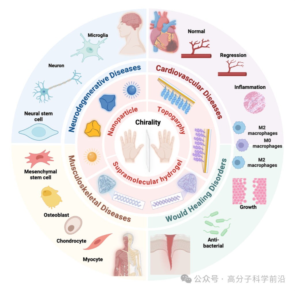Recently, Li Zhong and Huang Zhengfeng from The Chinese University of Hong Kong, in collaboration with Academician Chen Chunying from the National Center for Nanoscience and Technology, have systematically reviewed the latest advances and future applications of chiral engineered biomaterials in regenerative medicine. The first author of this review is Wang Yuwen, a second-year PhD student from the Department of Biomedical Engineering at The Chinese University of Hong Kong. The paper, titled ‘Chiral Engineered Biomaterials: New Frontiers in Cellular Fate Regulation for Regenerative Medicine,’ was published on December 26 in Advanced Functional Materials.