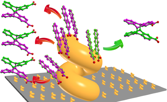 We, collaborating with Prof. C. YANG at Sichuan U. and Prof. Y. G. Wang at SUSTech, used helical metal nanostructures to mediate macroscopic manipulation of molecular chirality. This work was published by Nature Chem.