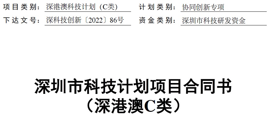Dr. Huang secured深圳市科技计划项目(深港澳C类) with RMB 1 million.