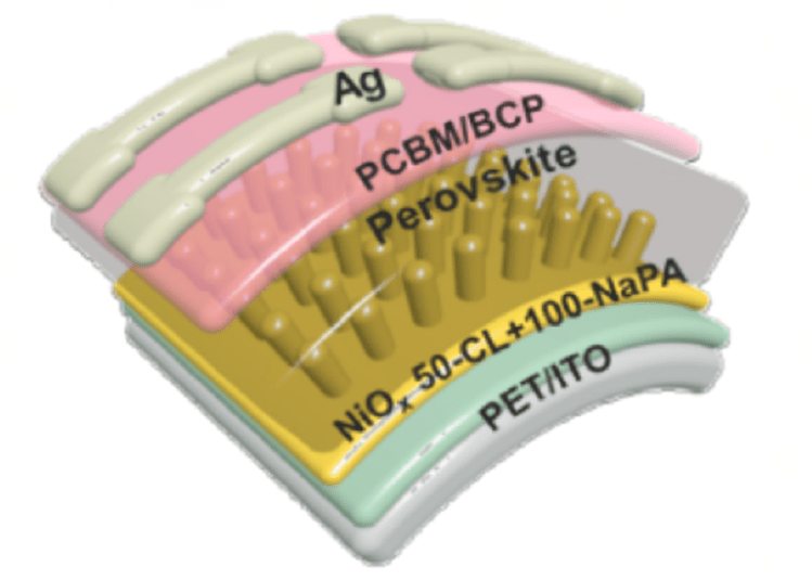 Semiconductor nanopillar arrays (NaPAs), functioning as charge transporting layers, can reduce light reflection loss, enhance the crystallinity of perovskites, prevent the decomposition of perovskites, suppress recombination dynamics, guide charge transport, and relax stress and strain in flexible optoelectronic devices. It leads to a significant improvement of photovoltaic performance, environmental stability, and mechanical robustness, for perovskite solar cells.