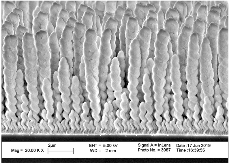 Glancing angle deposition (GLAD), custom-built physical vapor deposition (PVD) operated at an incident angle > 80o with respect to the substrate normal, is employed to fabricate a close-packed array composed of separated nanopillars due to the self-shadowing effect and temperature-limited adatom diffusion. The deposited nanopillars consist of sculpturable shapes through controlling substrate movement, and are made of a wide range of materials (including metals, alloys, semiconductors and dielectrics). Such nanopillar arrays are so-called sculptured nano-forests (SNAFs).